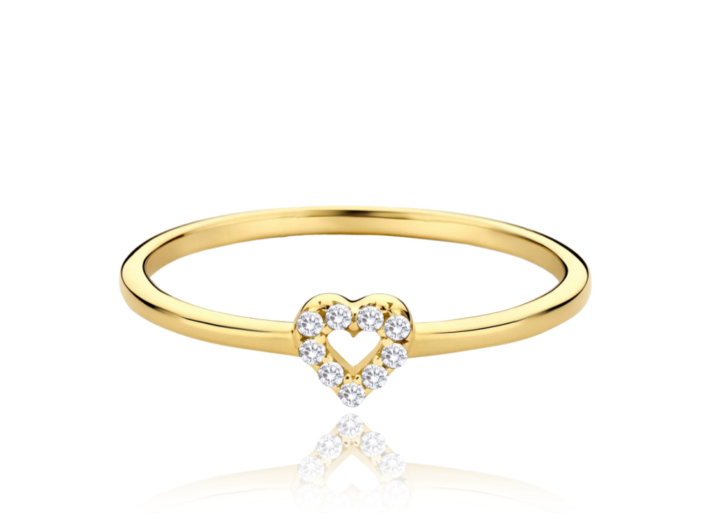 Zlatý prsten srdíčko s bílými zirkony Au 585/1000