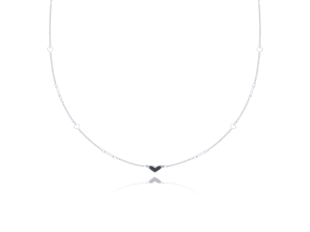 Náhrdelník z bílého zlata SRDCE ONYX Au 585/1000 Au 585; ≤1,45 g.