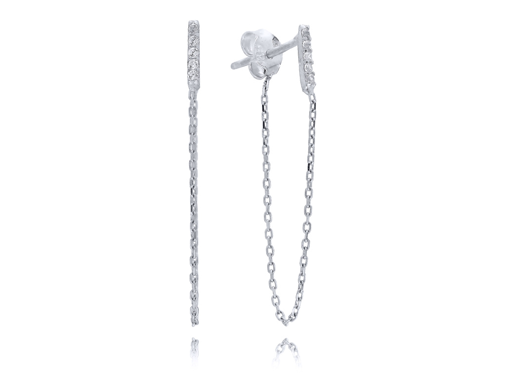 Tyto dámské visací náušnice z bílého zlata ryzosti 585/1000 zaujmou svou lehkostí a minimalistickým designem. Horní část je jemně osazena syntetickými zirkony, které dodávají šperku nenápadný třpyt, zatímco tenký řetízek vytváří elegantní pohyb při každém kroku.