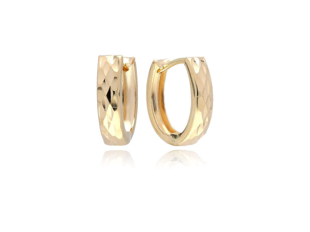 Dámské zlaté náušnice značky jsou vyrobeny z kvalitního žlutého zlata ryzosti 585/1000 a zaujmou čistým kruhovým designem, který patří mezi stálice šperkařské elegance. Kombinace broušeného povrchu a lesku dodává náušnicím jemný třpyt a vizuální hloubku.