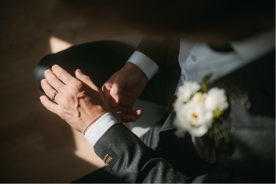Jednota kovů dělá rozdíl – pokud nevěsta nosí stříbro, vynechte zlaté detaily. Pokud má zlaté šperky, odvažte se i vy použít je v pánském provedení.